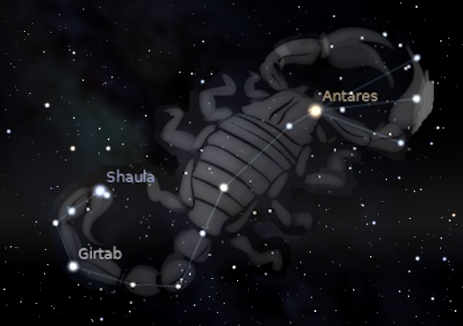 • Shaula: La segunda estrella más brillante, representa el aguijón del escorpión.
